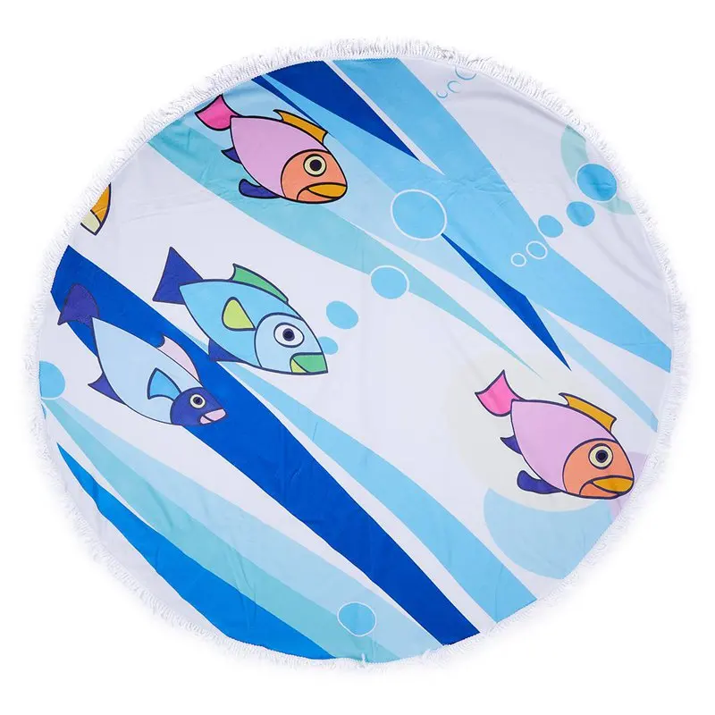 استعارات من ABGZ-كبيرة جولة الشاطئ منشفة من القطن الثقيل 60 ''سميكة ستوكات شرابة الطباعة اللون الكرتون الأسماك نمط شال عطلة التخييم حصيرة
